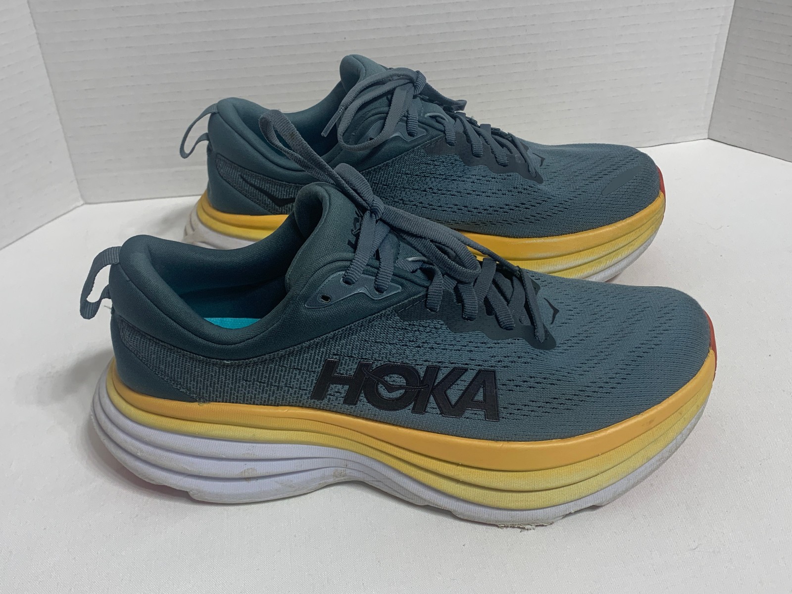 Hoka One One Bondi 8 Shoes Mens Size 8D Gray Yellow Running Sneakers Max Cushion | ThriftGalaxy — ThriftGalaxy