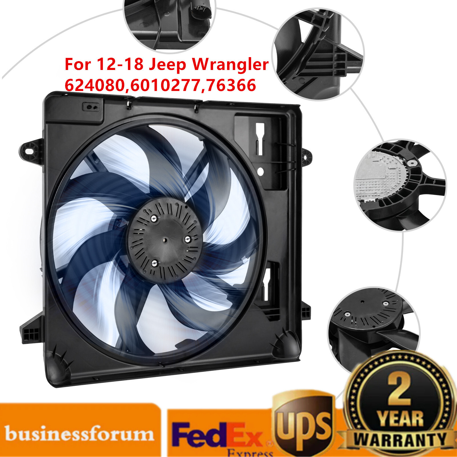 For 2012-2015 2016 2017 2018 Jeep Wrangler 3.6L Radiator Cooling Fan Assembly. Perfectly Compatible: Our cooling fan is specially customized for the 12-18 Jeep Wrangler. So it can be perfectly compatible with the adapted models and can be installed directly.
