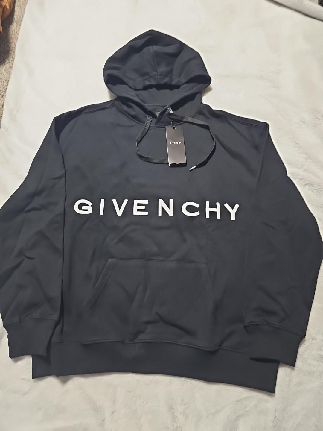 The Givenchy Black Fleece Logo Hooded Pullover Hoodie is a stylish and comfortable piece of men's activewear. Made from cotton fleece fabric, this hoodie features a solid black color with the iconic Givenchy logo accent. It has a crew neck with a drawstring closure, long sleeves, and a hood for added convenience. Machine washable and in size L, this hoodie is perfect for the winter, fall, and spring seasons, making it a versatile and trendy addition to any man's wardrobe.