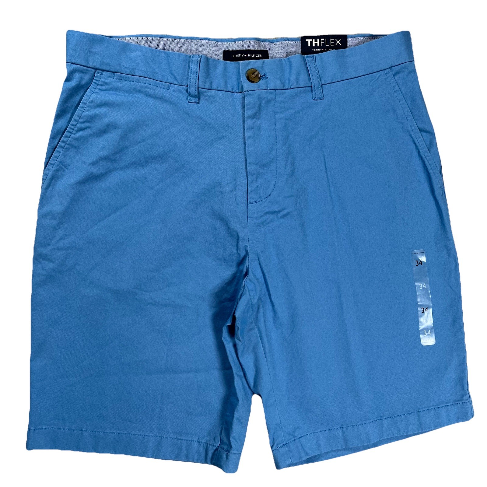 New Tommy Hilfiger Shorts Men's Sz 34 Blue TH Flex Stretch 9" Flat Front Preppy See pictures for approximate measurements. Item is new with tags and in new condition. Please note, colors may vary slightly based on device used to view photos.