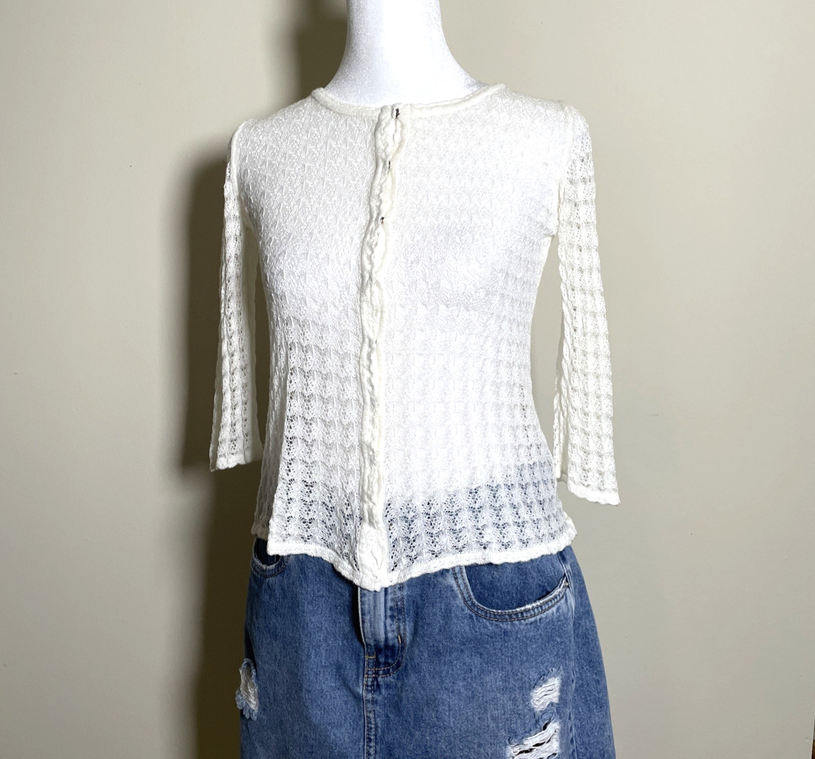 Zara Knit Women's Off-White Knit Sweater 3/4 Sleeve Cardigan Size Small Casual | ThriftGalaxy — ThriftGalaxy