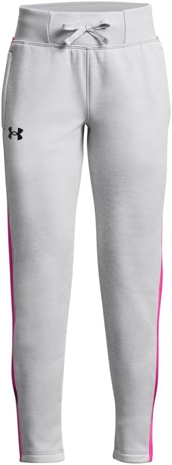 The Under Armour Girls Armour Fleece Pants in Halo Gray are perfect for active young girls. These jogger-style pants feature a drawstring closure for a comfortable and adjustable fit. Made from cozy fleece fabric, they are ideal for activities like play, walking, cycling, and running. The stylish gray color and polyester material make these pants both functional and trendy, suitable for any young athlete or outdoor enthusiast.