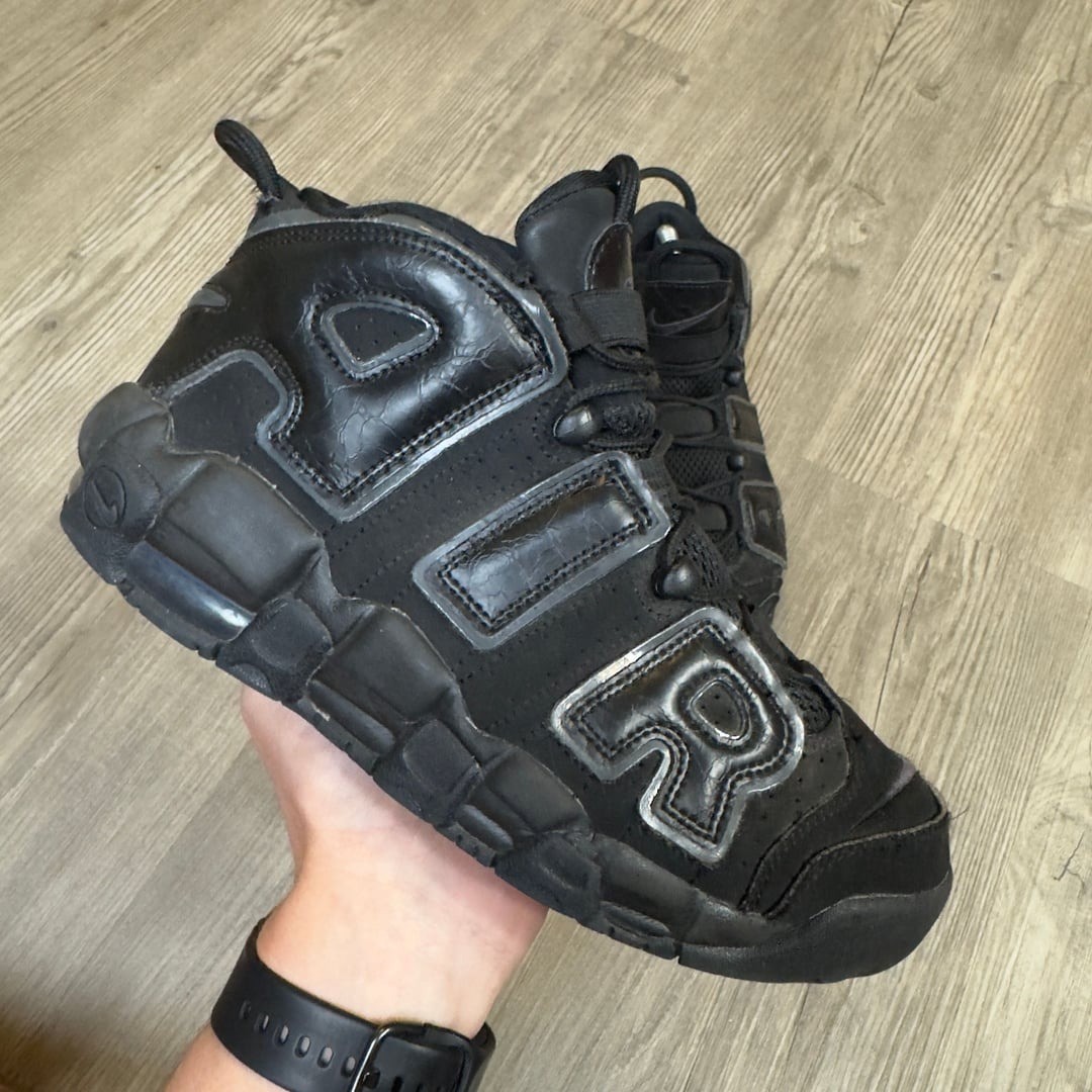 Nike Air Uptempo GS high-top basketball sneakers in an all-black colorway. These trainers feature the iconic 'AIR' lettering on the sides and offer a comfortable and supportive fit. They are in excellent pre-owned condition, with normal signs of wear. SNEAKERRSE IS A MOTIVATED SELLER. WILL ENTERTAIN ALL OFFERS. Your order will be shipped out within one business day from time of purchase to ensure prompt delivery speeds. Trusted seller with thousands of positive transactions across all platforms.
