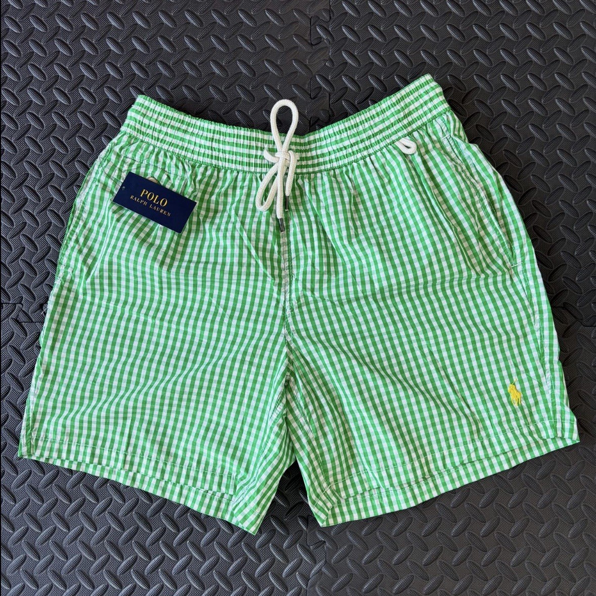 Polo Ralph Lauren Men's Green Gingham Swim Shorts Elastic Waist Drawstring