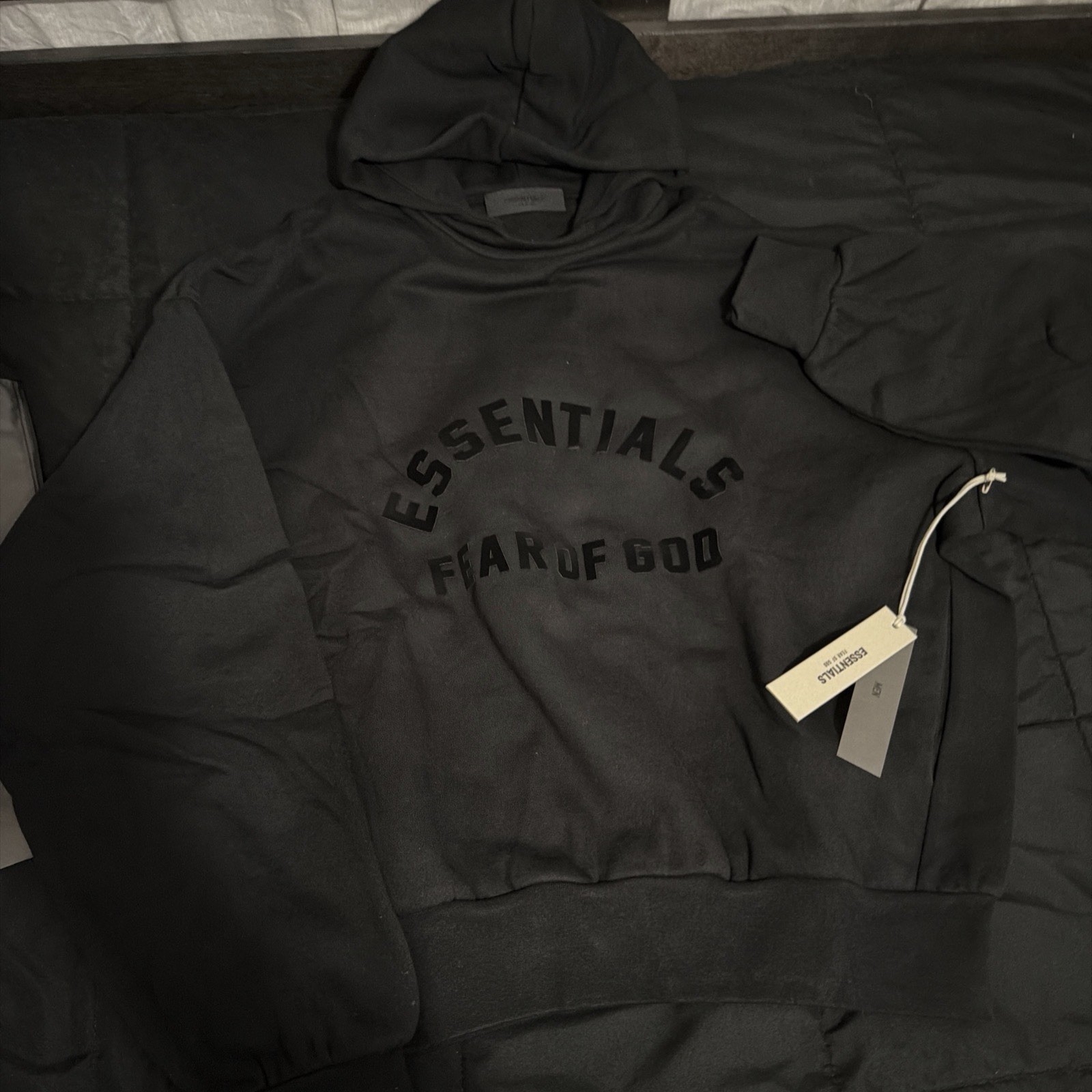 The Fear of God Men's Hoodie in XL Jet Black is a stylish and authentic piece of clothing suitable for the winter and fall seasons. Made from cotton fleece fabric, this pullover hoodie features a solid black color with long sleeves and a crew neck. The hoodie is hooded and accented with a logo, making it perfect for gym and training activities. With its high-quality construction and brand authenticity, this hoodie is a must-have for men looking for a comfortable and fashionable activewear option.