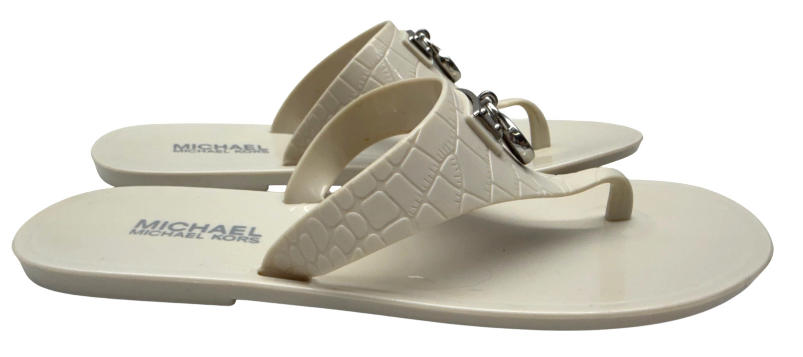 Michael Kors Sandals MK Logo Charm Thong LILLIE Jelly Flip Flop White Sz 7 - 7.5 | ThriftGalaxy — ThriftGalaxy