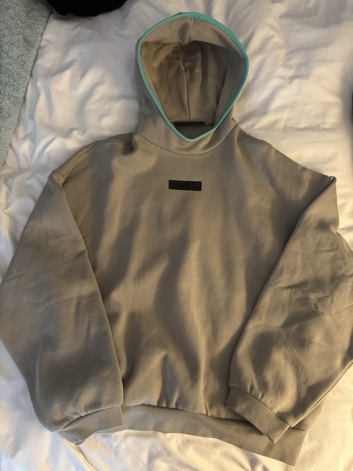 The Fear of God Essentials Men's Seal Hoodie in size S is a stylish and trendy pullover hoodie designed for men. This beige hoodie features the iconic Fear of God brand and comes in a regular size fit. Perfect for casual wear, this hoodie offers a comfortable and on-trend addition to any man's wardrobe. Has side pockets. Please note its oversized and baggy. So even though its a size small, fits more like a medium or even large. Please see measurements. Color is “seal” like a beige-like color.