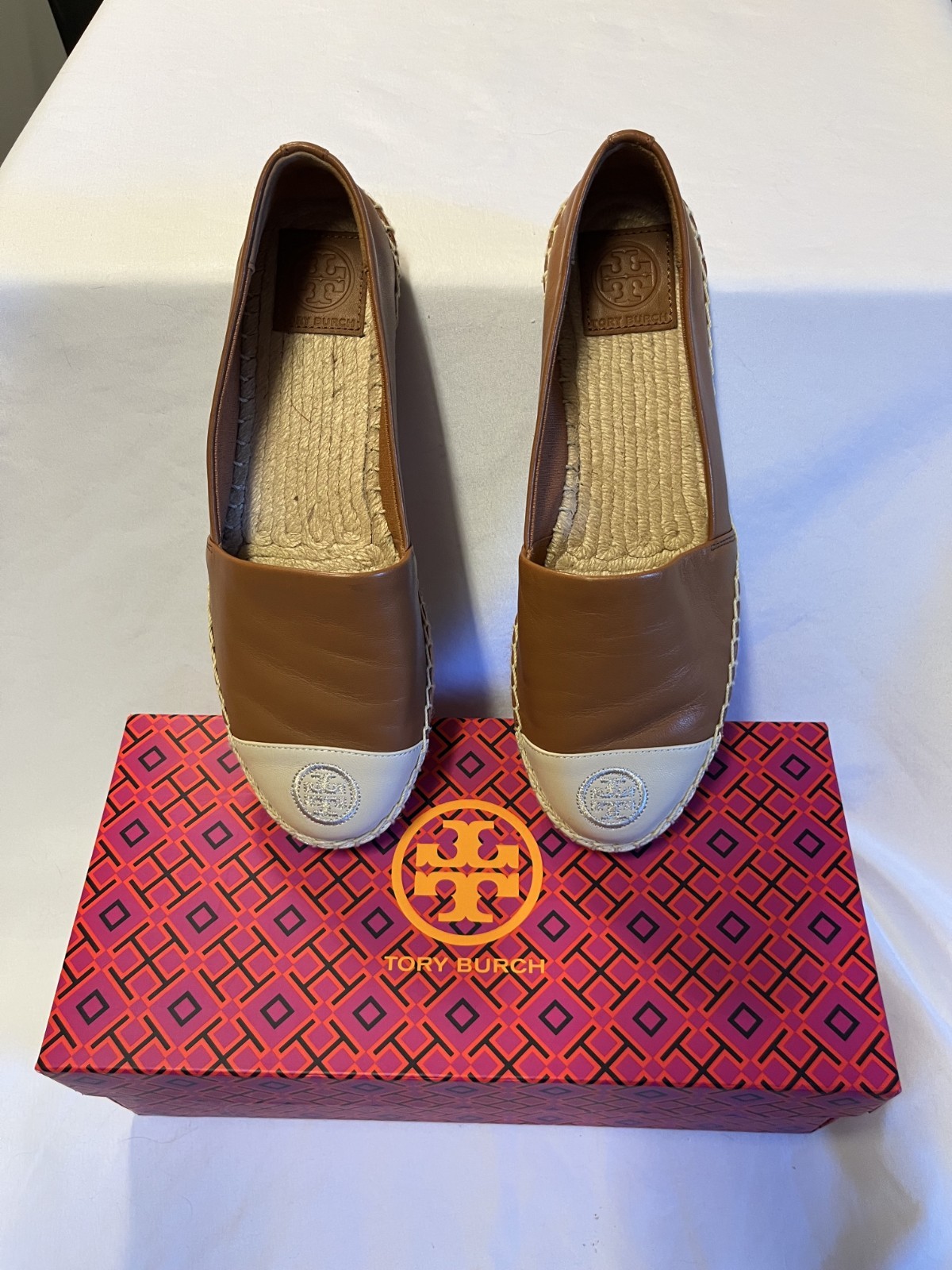 Size 7.5 Brand new in original box Never worn Fits true to size, order your normal size Round cap toe Slip on Embroidered double T logo Leather upper, cotton lining, rubber sole Smoke free home.