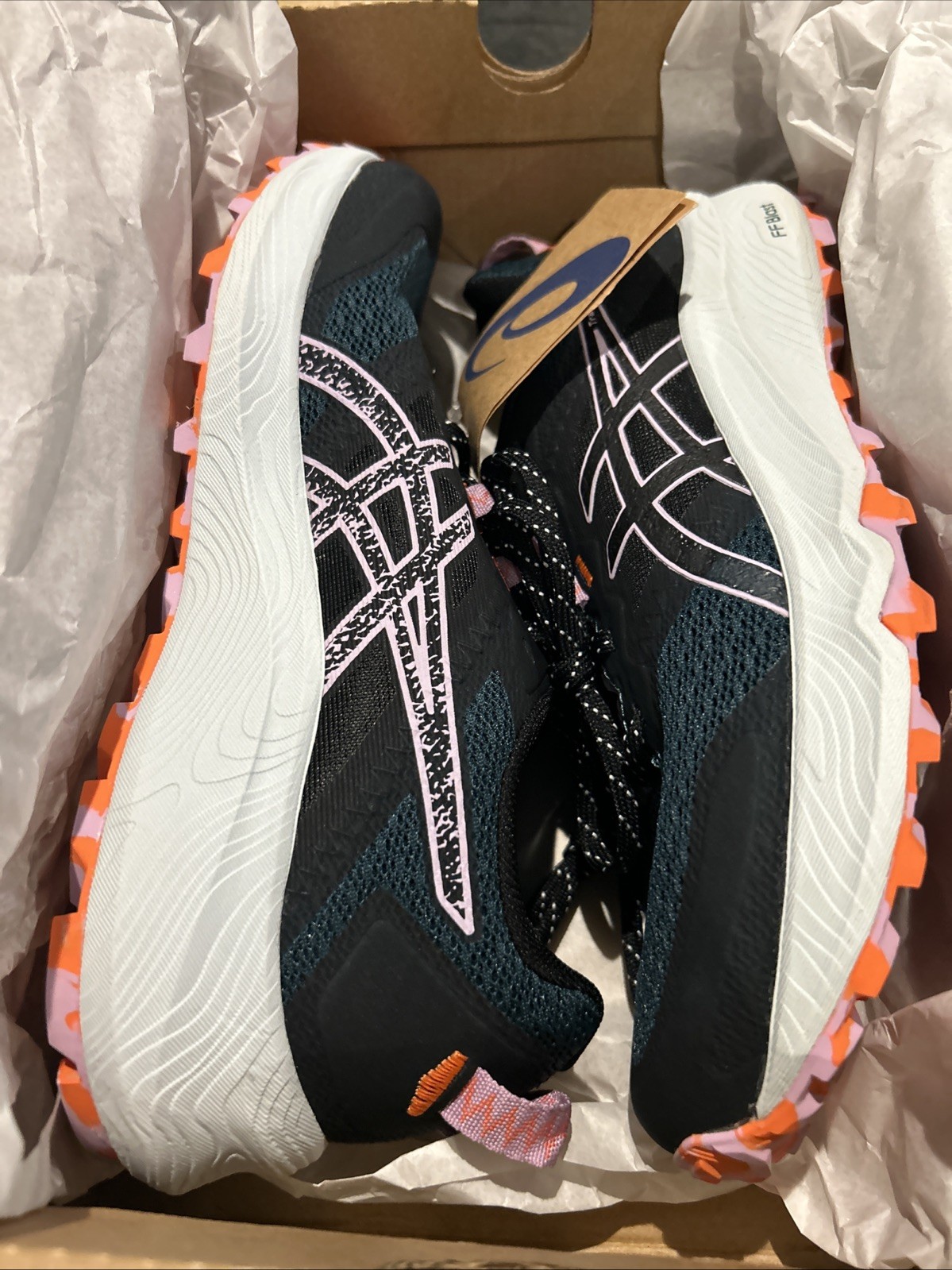 ASICS Trabuco Terra 2 Black Green 1012B427. Women's Shoes Size 8. Condition is New with box. Shipped with USPS Ground Advantage.