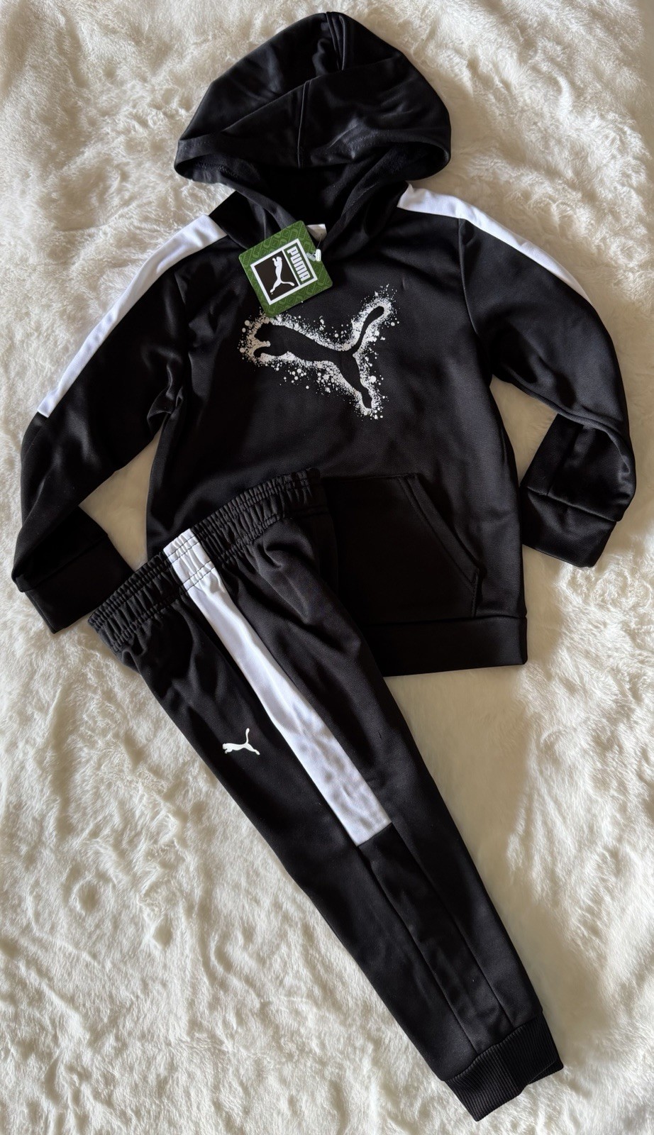 PUMA ATHLETICWEAR. Toddler Boy's Fleece Hoodie and Joggers, 2-Piece Set. Elastic waistband on joggers. This PUMA set includes a fleece hoodie and joggers/sweatpants.