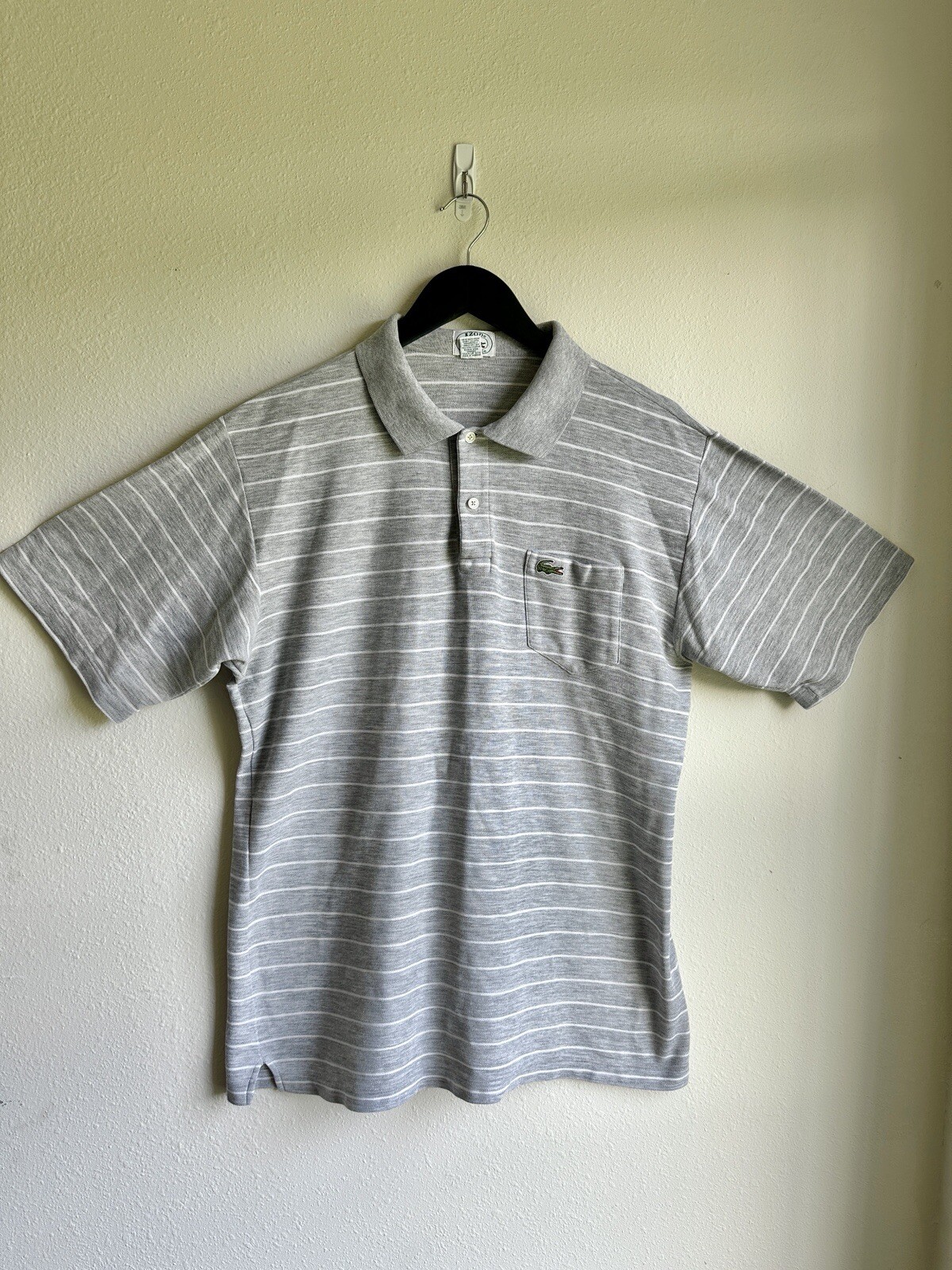 Great condition! Men's polo gray with stripes. Well cared for. Measurements: Chest across 21" Shoulder to bottom length 29" Ships USPS