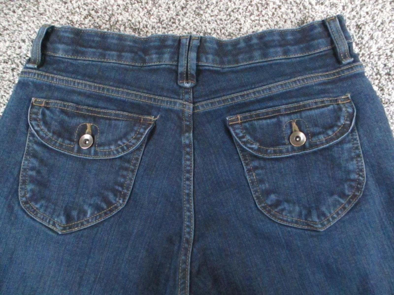Style line: Comfort Waistband stretch bootcut jeans. It is common for pre-owned jeans to shrink or stretch based on how they were washed/dried/worn from previous owners. Color/Wash: Blue dark wash denim.