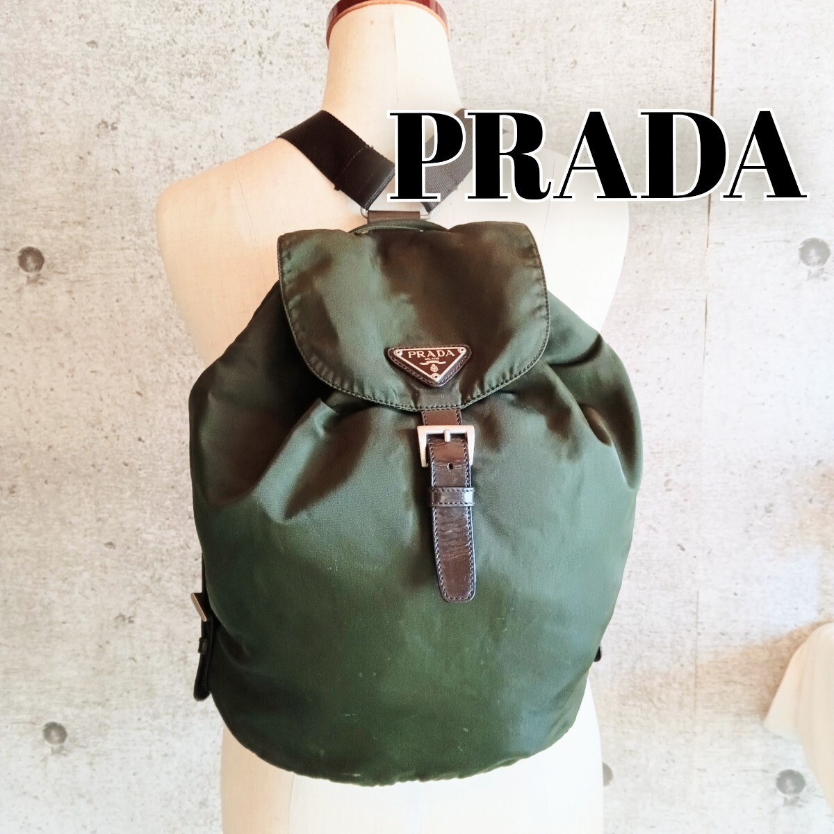 Good Condition Prada Vintage Olive Nylon Drawstring Backpack Ladies Men s from j | ThriftGalaxy — ThriftGalaxy