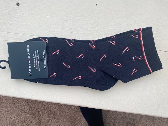 1 Pair Gingham Check. NWT - Tommy Hilfiger Socks - Navy Blue base color - Novelty Socks. Tommy Hilfiger Emblem Flag on socks.