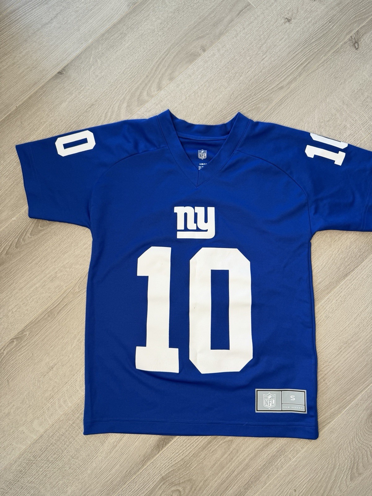 Classic Giants blue with bold white numbers, sleeve numbers, and name on the back. Lightweight 100% polyester with a V-neck football jersey cut. Perfect for young fans, game days, or football season wear. Details: • League: NFL • Team: New York Giants • Player: Eli Manning • Item Type: Youth Football Jersey • Size: Boys Small • Color: Blue • Material: 100% Polyester • Condition: Gently Used • No holes or tears • Light, normal wear only (see photos) 94.3.59