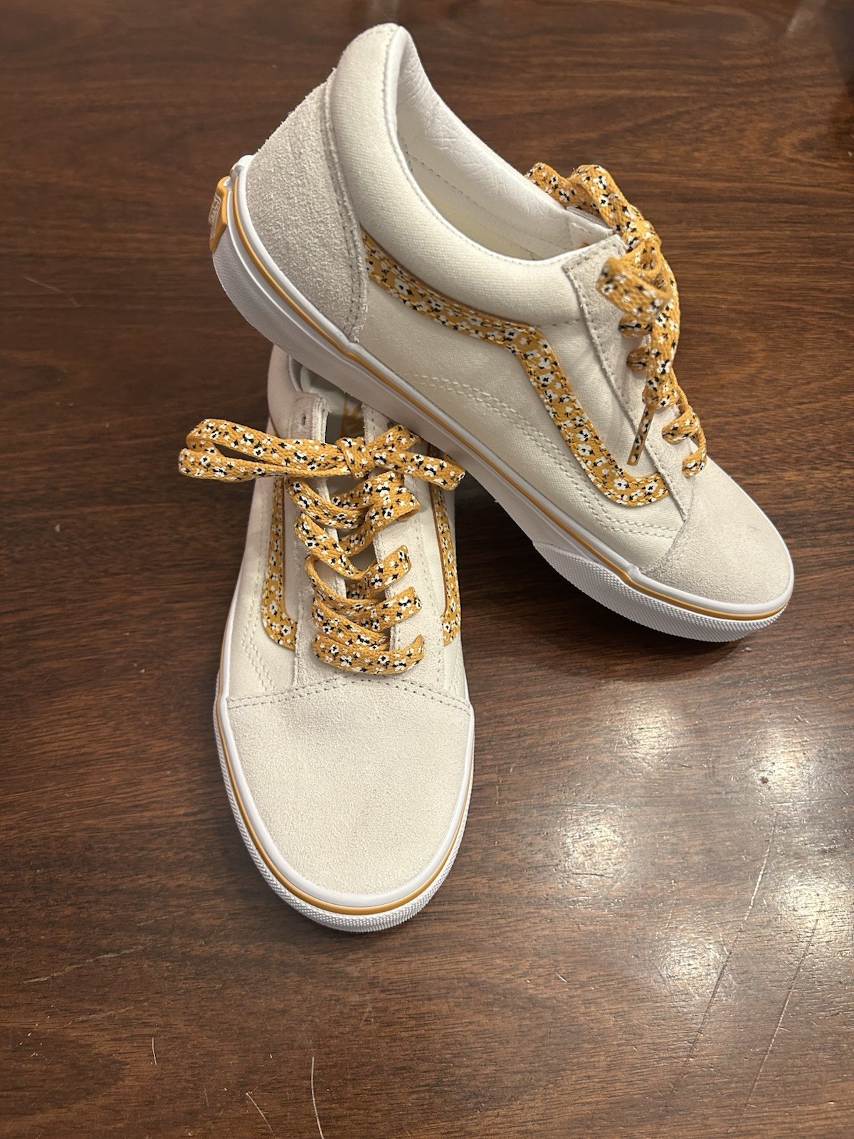 VANS White Canvas Low Top Sneakers Yellow Flowered Lace Up Casual Shoes | ThriftGalaxy — ThriftGalaxy