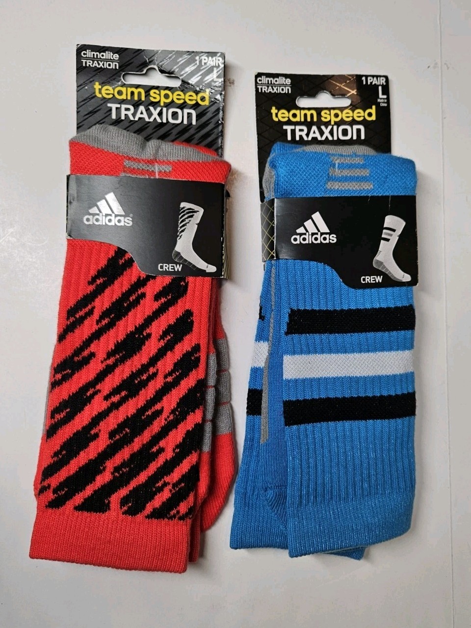 Adidas team speed climalite Traxion Socks Men's L 9.5-12 set of 2 orange blue | ThriftGalaxy — ThriftGalaxy