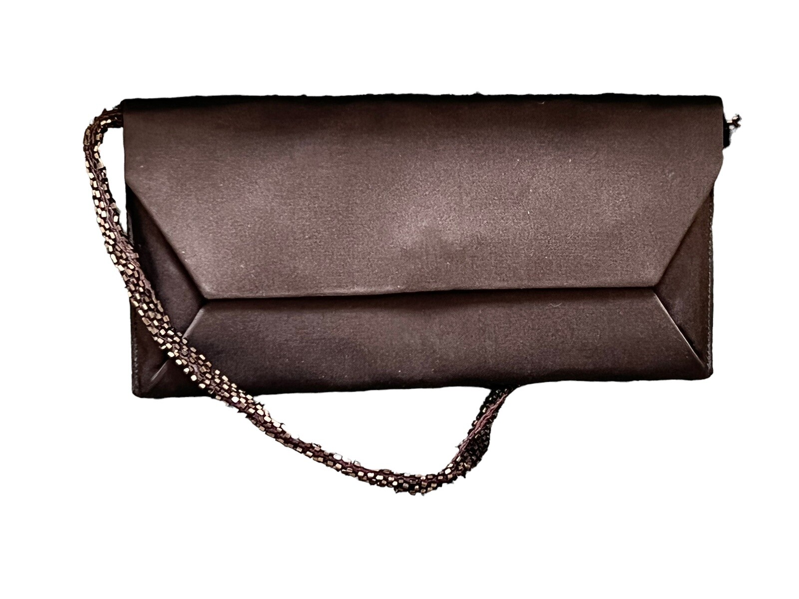 NANCY BACICH Brown satin beaded handle envelope evening bag Satin evening bag with concealed snap closure Beaded handle 1 interior slip pocket Material Satin.
