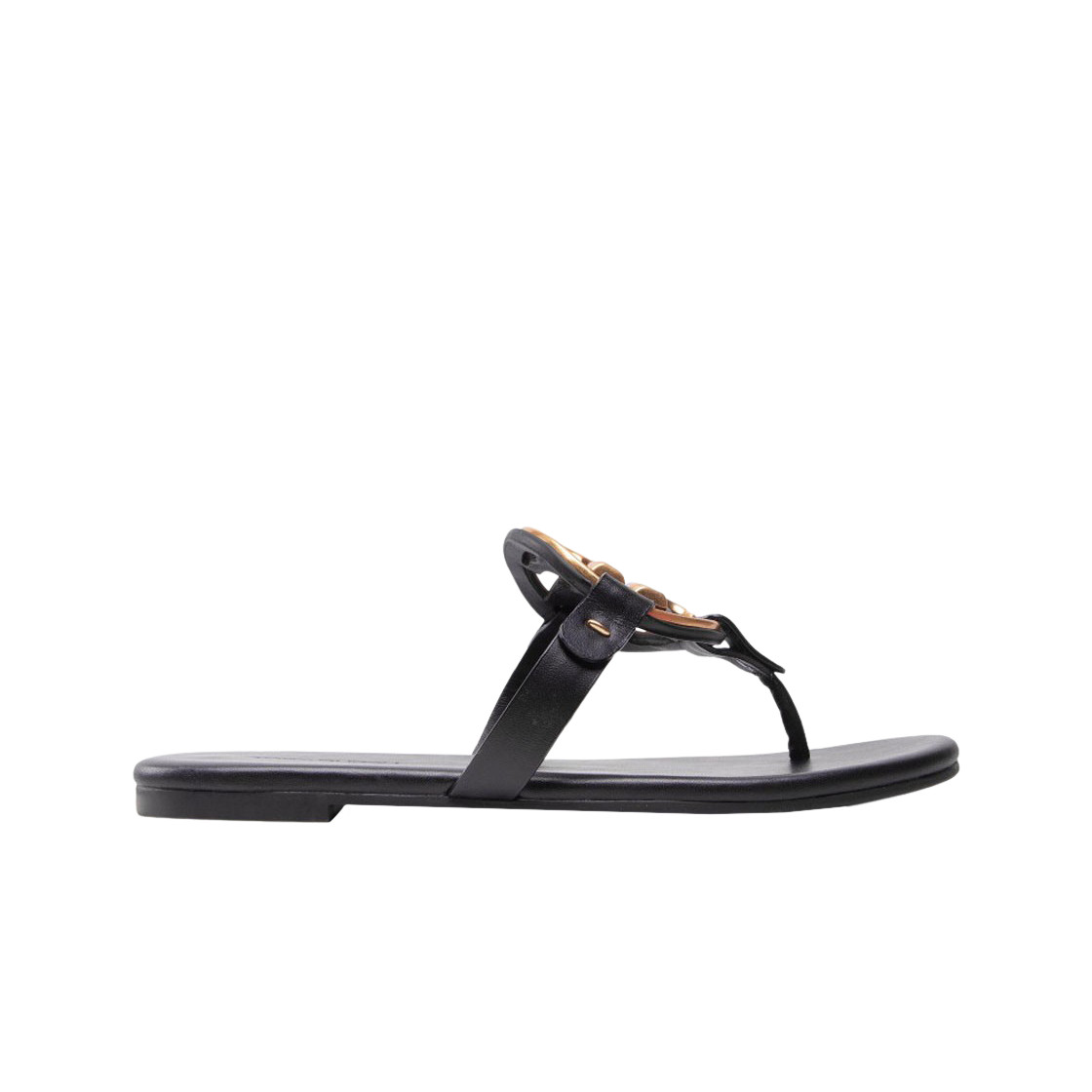 Tory Burch Miller Soft Metal Logo Sandals - Black | ThriftGalaxy — ThriftGalaxy