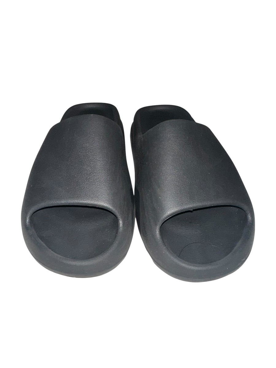Got a pair of Onyx Yeezy slides here. They're super comfortable and have that classic chunky look everyone is wearing right now. These are the dark charcoal/black colorway so they go with pretty much anything. They've been worn but still have plenty of life left in them. Great for just lounging around or running quick errands. let me know if you have questions.