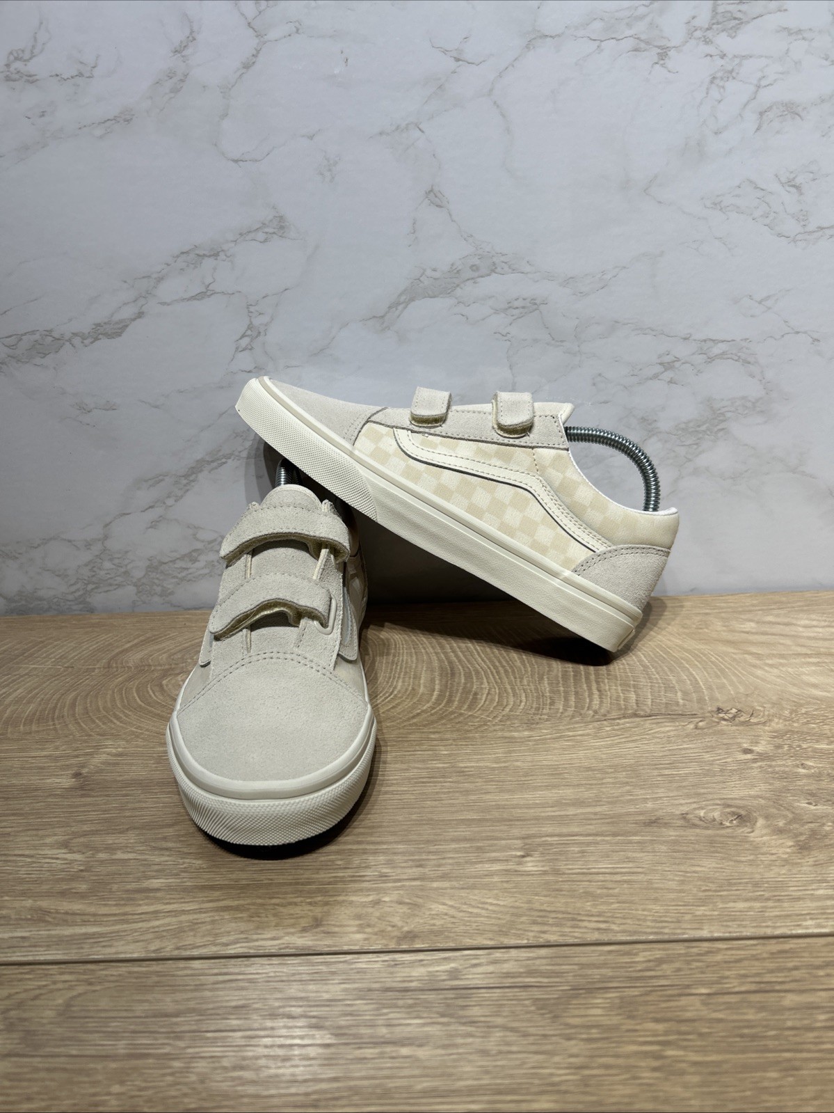 The Vans Big Kids' Old Skool V Checkerboard Casual Skate Sneakers in size 6.5 are a stylish and comfortable option for boys. The rubber outsole provides durability and support for walking, school, or skateboarding activities.