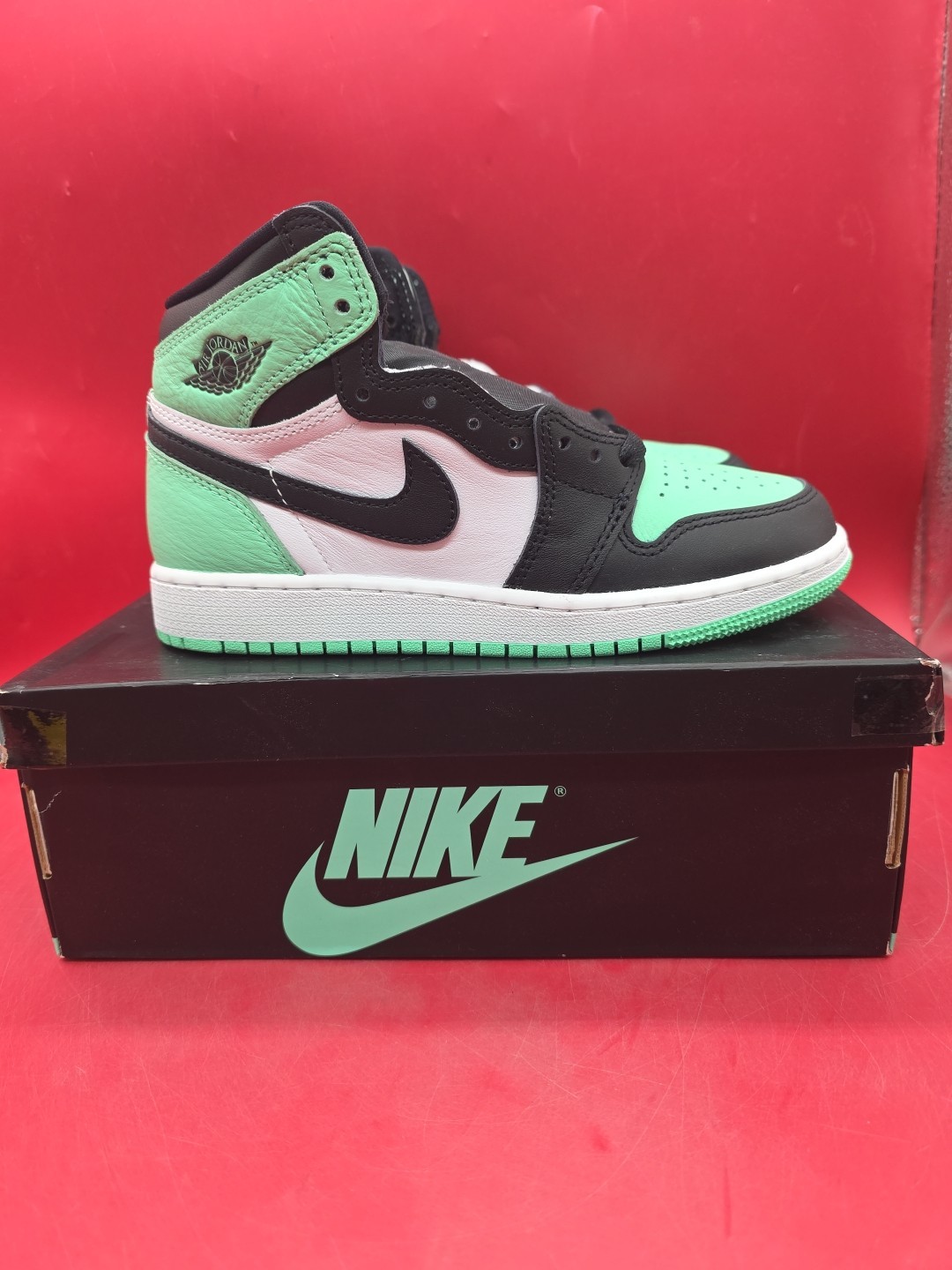 This is a brand new item. The product is a pair of Air Jordan 1 Retro High OG sneakers in a size 4Y, featuring a round toe, lace-up closure, flat heel, and rubber outsole. The shoes are in a color scheme of white, black, and glow green, with the logo as accents. They are part of the Air Jordan product line and are authenticated as 100% authentic. These athletic shoes are suitable for walking and are designed for a retro theme, making them a stylish option for kids during the summer, fall, and spring seasons. 1569