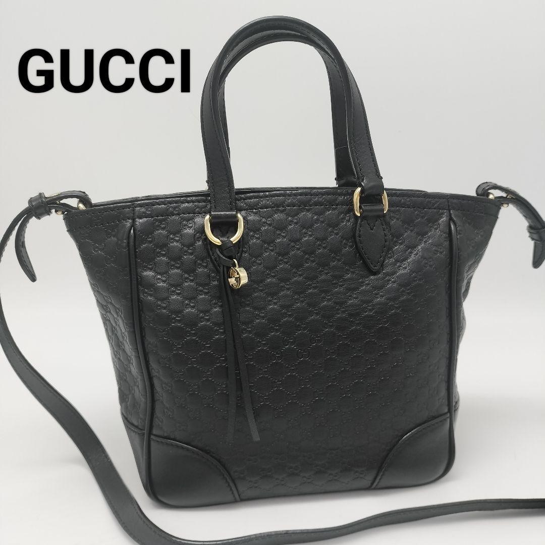 Elegant all-leather design with the iconic Micro GG pattern. This is an authentic Gucci 2-Way Leather Tote Bag in classic black, crafted from high-quality all-leather material. Versatile and stylish, it can be carried as a handbag or shoulder bag, making it suitable for various occasions.