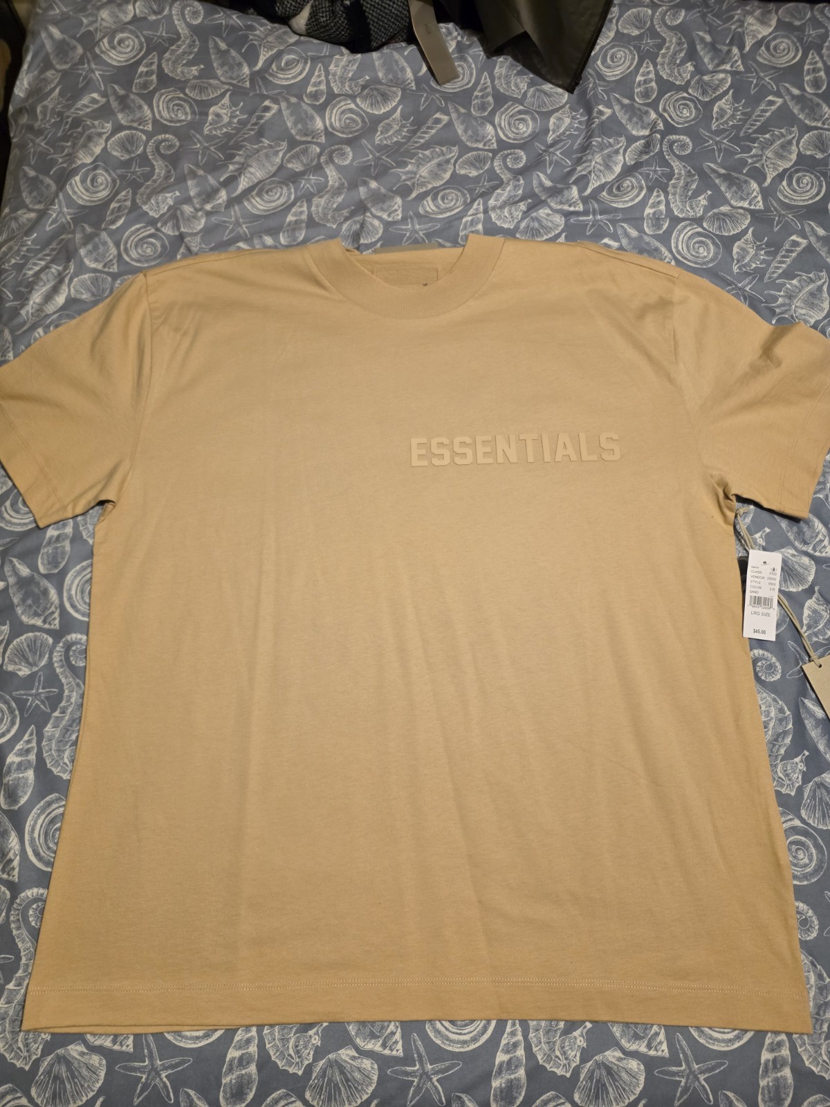 Fear of God Essentials Sand Logo Cotton Knit Crew Neck Men's T-Shirt Size L | ThriftGalaxy — ThriftGalaxy