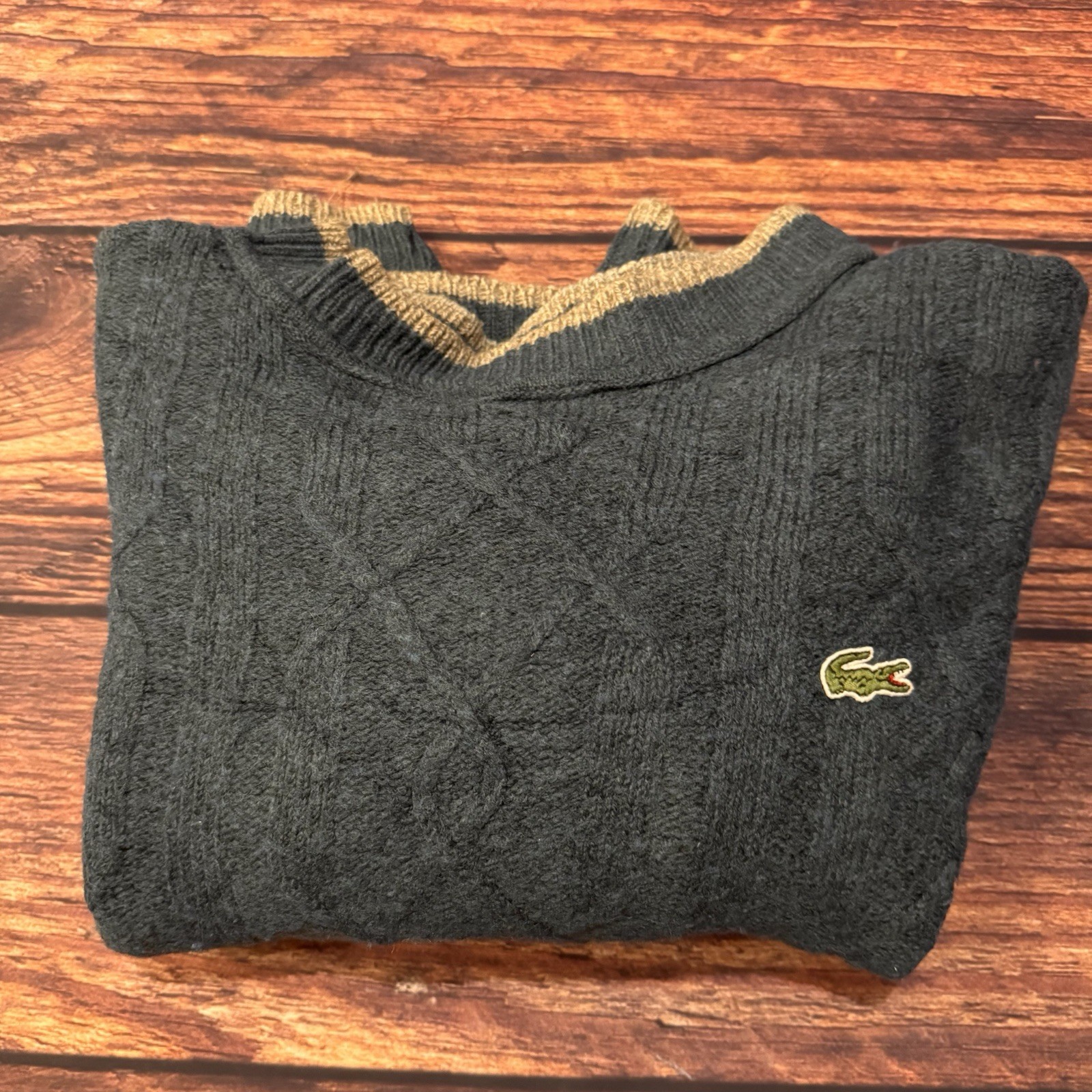 Women’s Vintage Lacoste Sport No. 5 Cropped Blue and Beige Pullover Nice embroidered logo Nice Wool and Acrylic Blend Does has one hole on the left seam (See Picture) Size is Large (12) Pit to Pit included Shoulder to Hem also Overall Good Condition Used General Wash needed