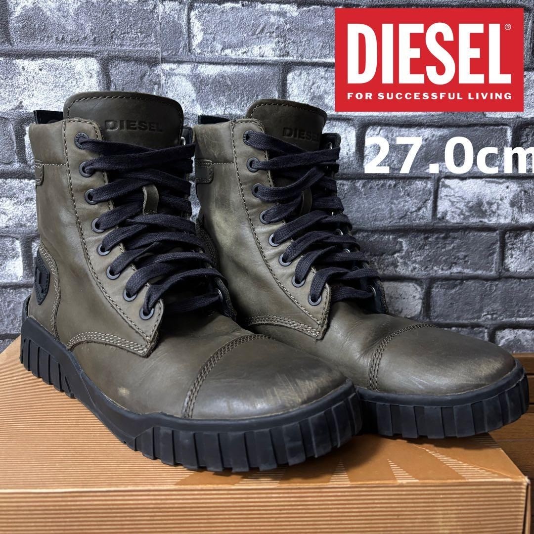 DIESEL H-RUA AM Olive Night Military Boots 27cm Genuine Leather Wide Japan
