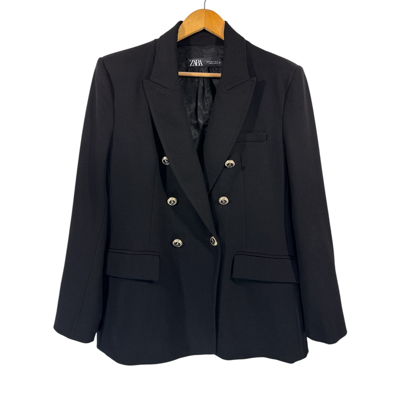 ZARA Black Double Breasted Tailored Blazer Gold Buttons Women’s Size XL | ThriftGalaxy — ThriftGalaxy