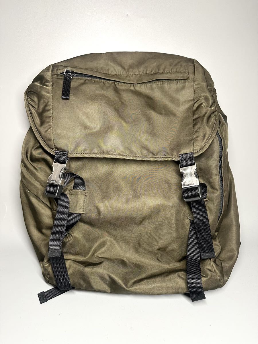 PRADA Backpack Khaki Nylon Backpack Triangle Logo Men s 2VZ062 from japan | ThriftGalaxy — ThriftGalaxy