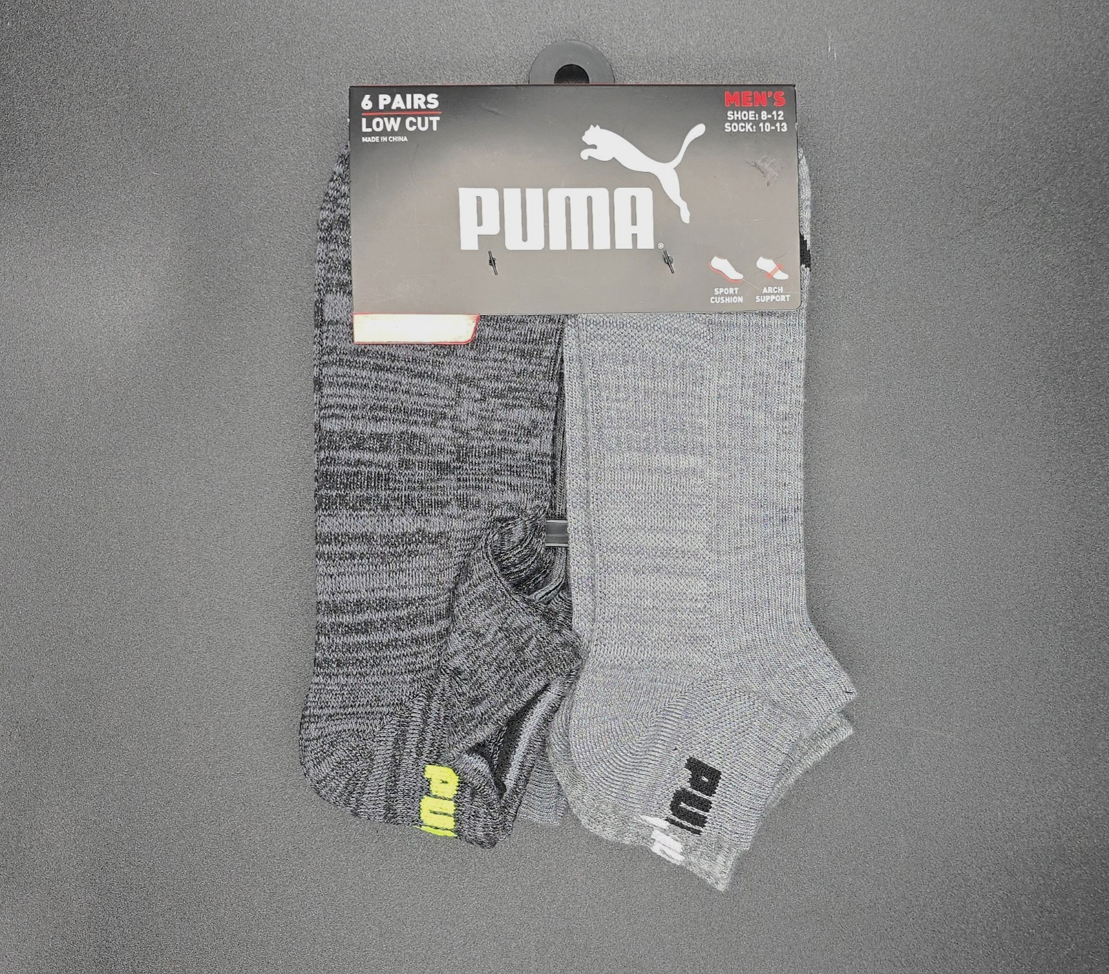 There's no such thing as too many no-show socks. With arch compression for added support. Machine Wash. Product color: Different shades of grey. No-show length.