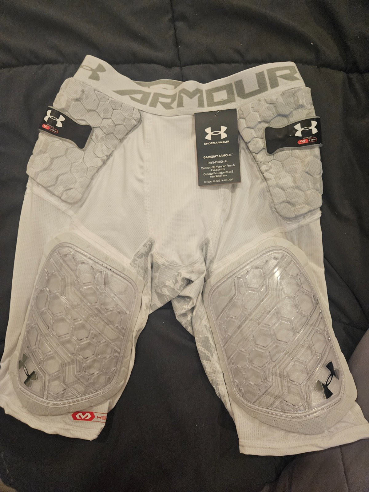 These Under Armour Gameday White Hex Padded Armored Compression Shorts are designed for men who lead an active lifestyle, whether they're hitting the gym or playing football. Made of polyester blended fabric, these shorts provide compression in the waist area and feature padding for added protection. With a solid white color and athletic fit, they are perfect for summer, fall, and spring seasons. The 11-inch inseam and stretch features make them comfortable for a variety of activities, while the machine washable care instructions ensure easy maintenance.