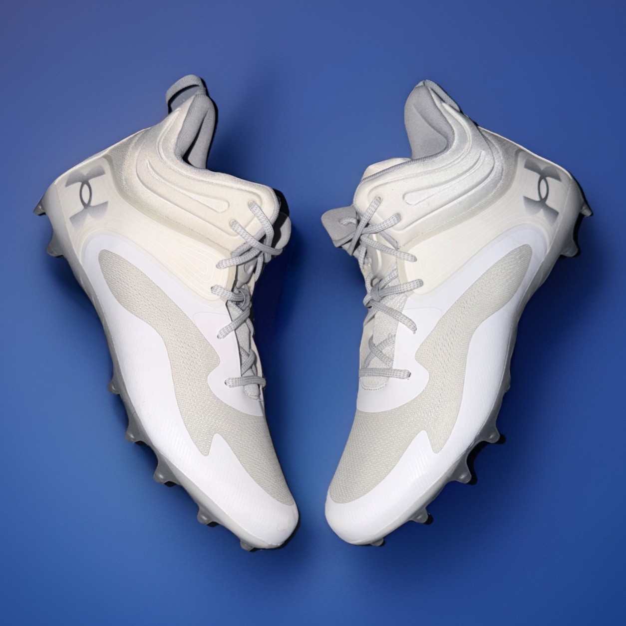Brand new ships fast! The Under Armour Command MC Mid Lacrosse Cleats 3025639-100 in White Grey are men's size 15 athletic shoes designed for lacrosse. These sneakers feature a lace-up closure, mid-top shoe shaft style, and solid white color with synthetic outsole material. With a focus on performance and activity, these cleats are suitable for winter, summer, fall, and spring seasons. The Under Armour Command MC model is part of the product line for lacrosse and sports-themed footwear, perfect for active individuals looking for quality athletic shoes.