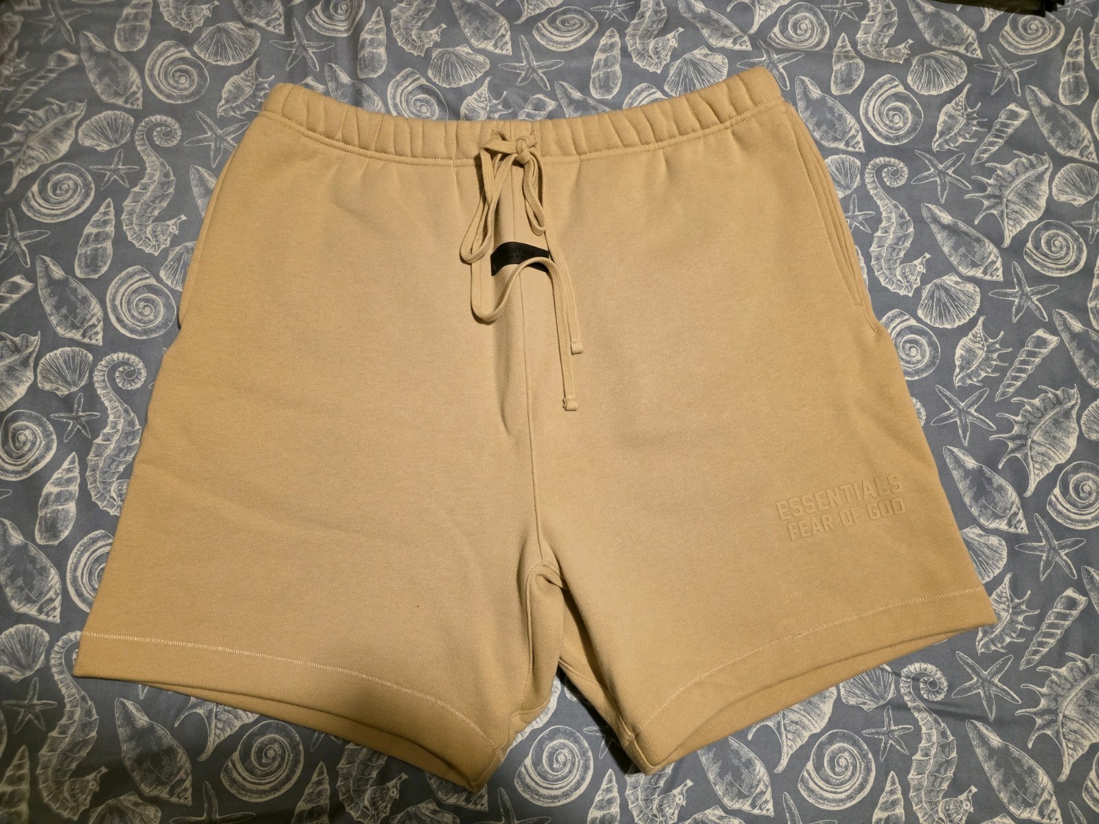Essentials Fear of God Men's Sweat Shorts Sand Drawstring Logo | ThriftGalaxy — ThriftGalaxy