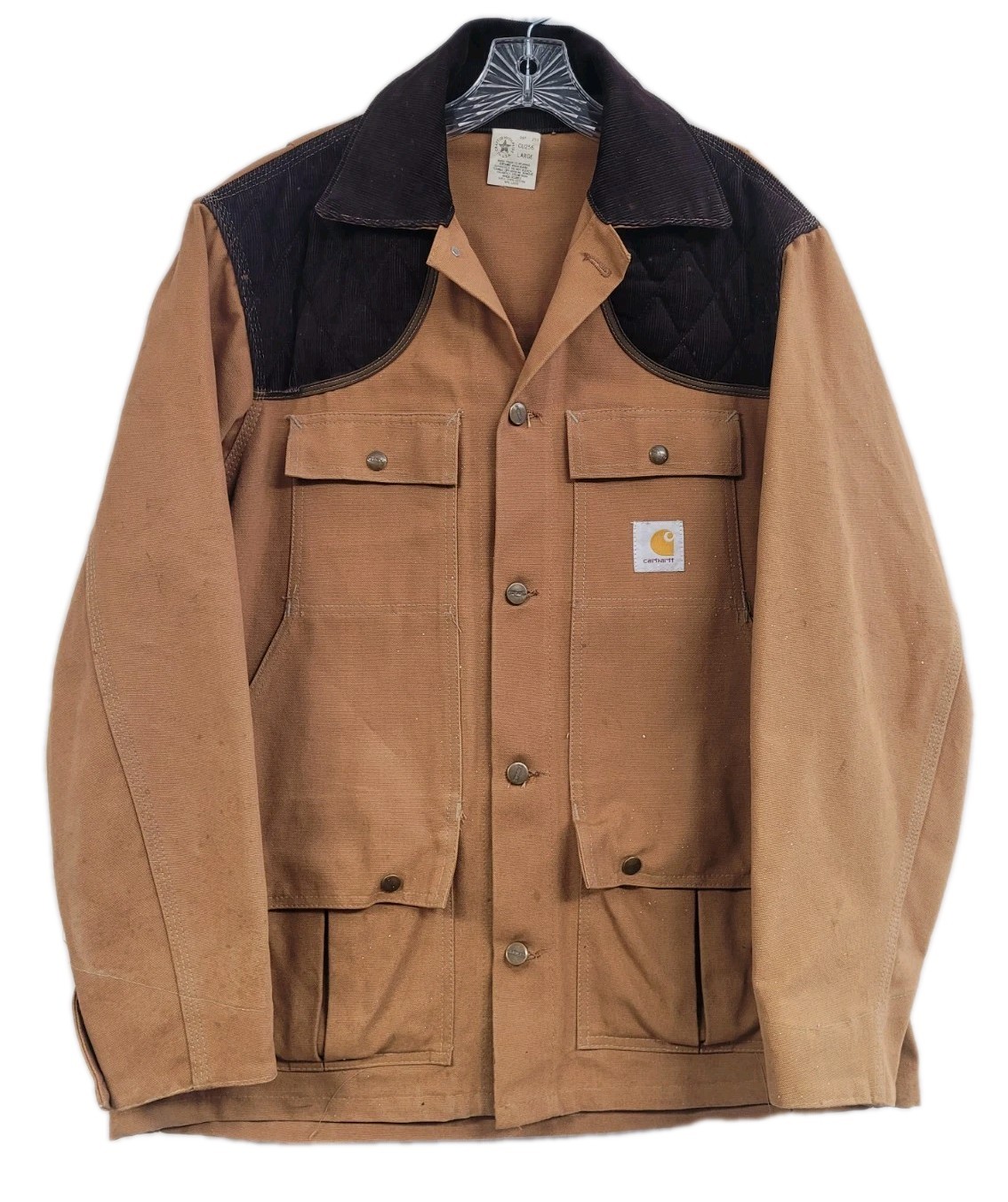 VINTAGE CARHARTT HUNTING JACKET CANVAS GAME POCKET CORDUROY COLLAR CU256 SZ LRG | ThriftGalaxy — ThriftGalaxy