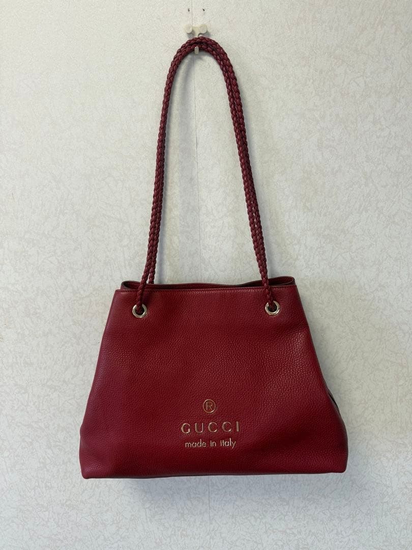 This is an authentic Gucci leather tote bag in a vibrant red color, crafted from high-quality leather. - Genuine Gucci leather tote bag in eye-catching red. This Gucci tote bag is in excellent condition, showing only slight signs of use due to a few prior uses.