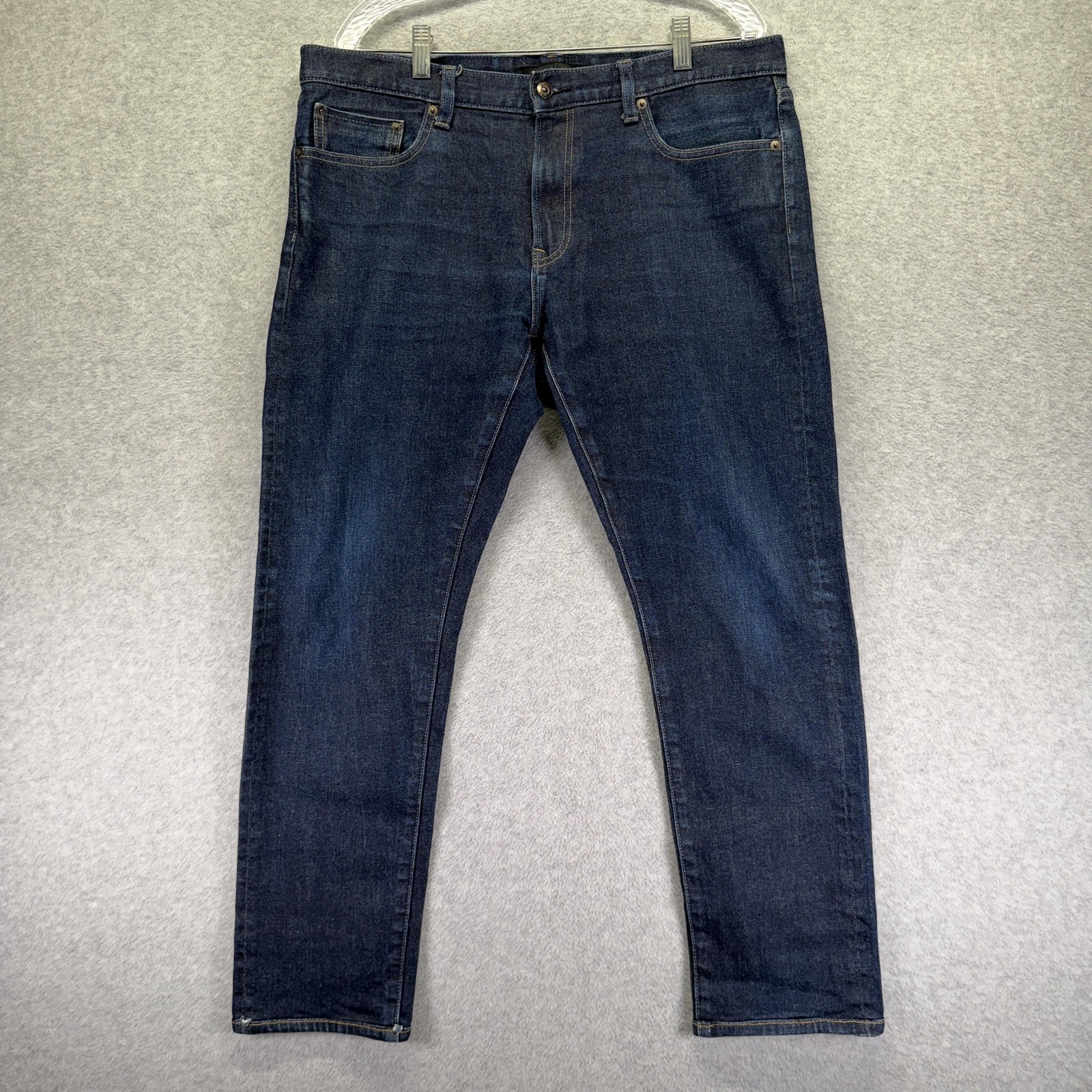 Uniqlo Jeans Mens 36x28 Indigo Selvedge Slim Mid Rise Straight Stretch Denim | ThriftGalaxy — ThriftGalaxy