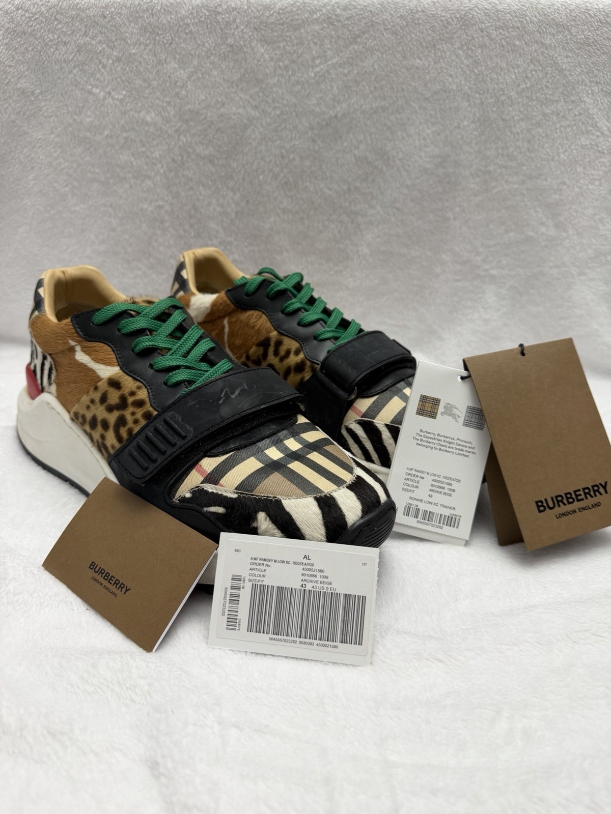 Burberry London Ramsey Animal Vintage Check Sneakers Men’s Size 43