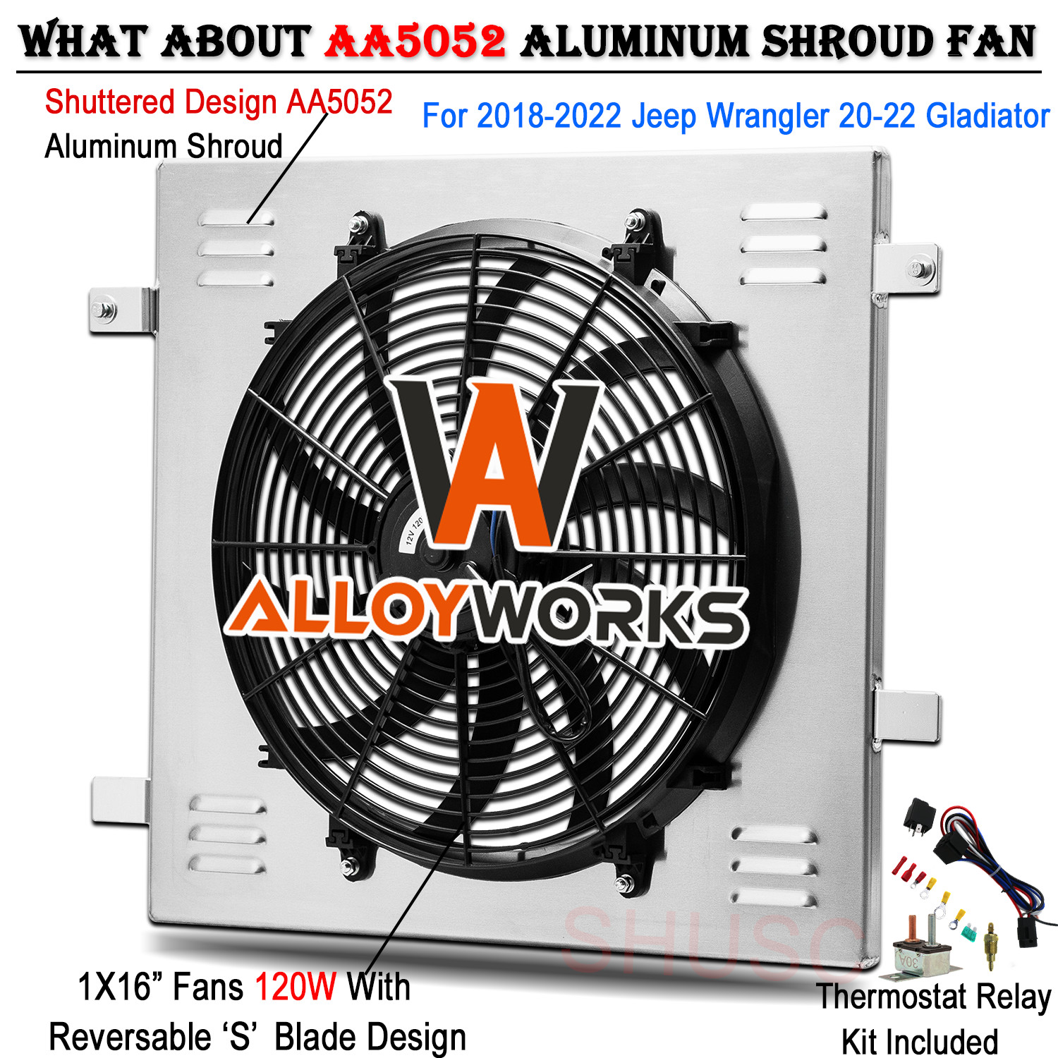 2022 Jeep Gladiator 3.0L. 2022 Jeep Gladiator 3.6L. 2022 Jeep Wrangler 2.0L. 2022 Jeep Wrangler 3.6L. 2022 Jeep Wrangler 3.0L. 2022 Jeep Wrangler 6.4L. 2020 Jeep Gladiator 3.6L. 1 X AA5052 Aluminum Shroud.