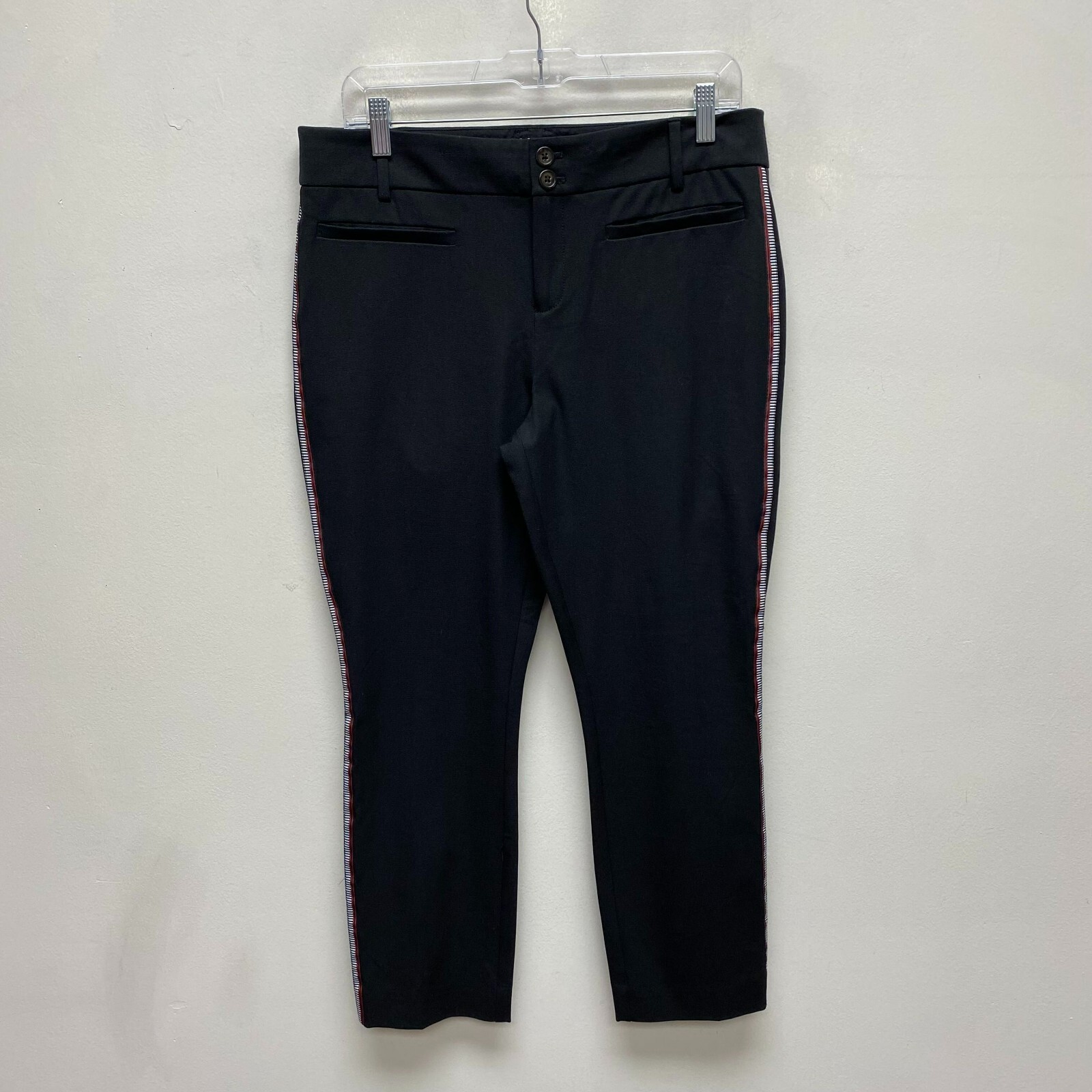 Anthropologie Black High Rise Side Stripe Essential Slim Stretch Crop Pants 10 | ThriftGalaxy — ThriftGalaxy