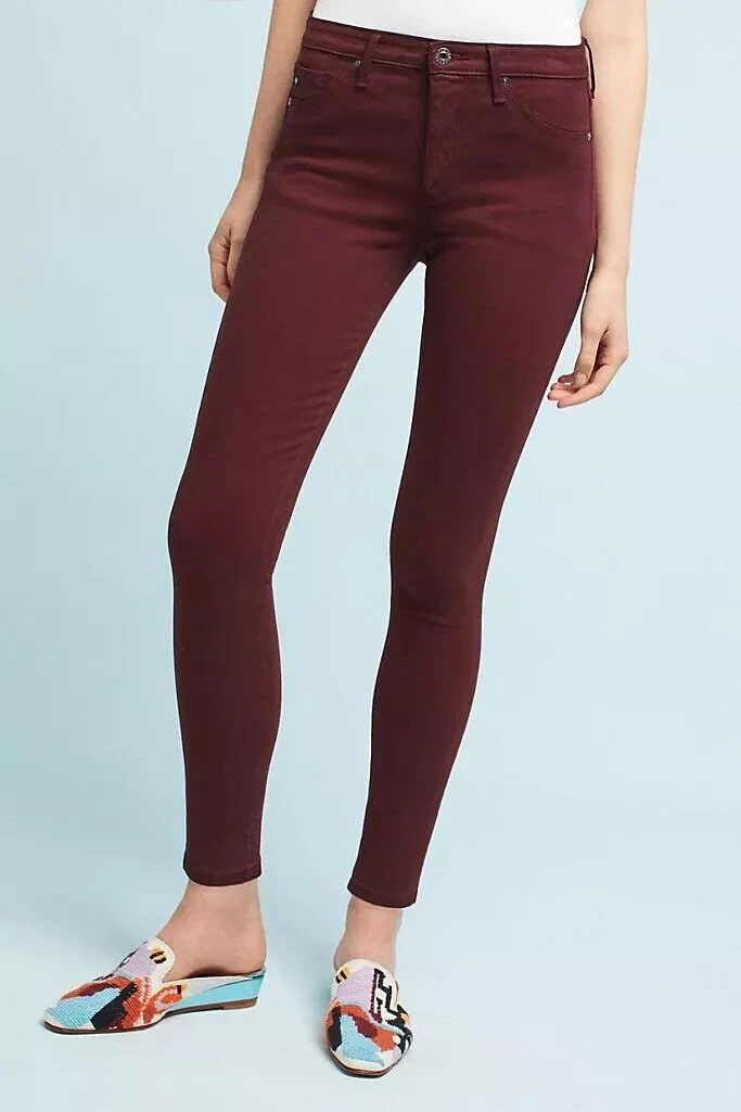 AG Adriano Goldschmied Abbey ankle mid rise super skinny burgundy Jeans29R. AG The Abbey Sateen Mid-Rise Skinny Ankle Jeans. Sateen denim jeans have a smoother, softer finish than traditional denim while keeping a polished, structured look, with added stretch for comfort.
