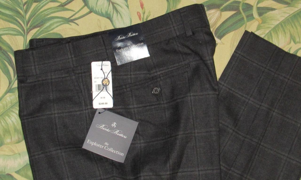 $248 BROOKS BROTHERS Grey Merino Wool Windowpane Dress Pants 30 x 30 NWT | ThriftGalaxy — ThriftGalaxy