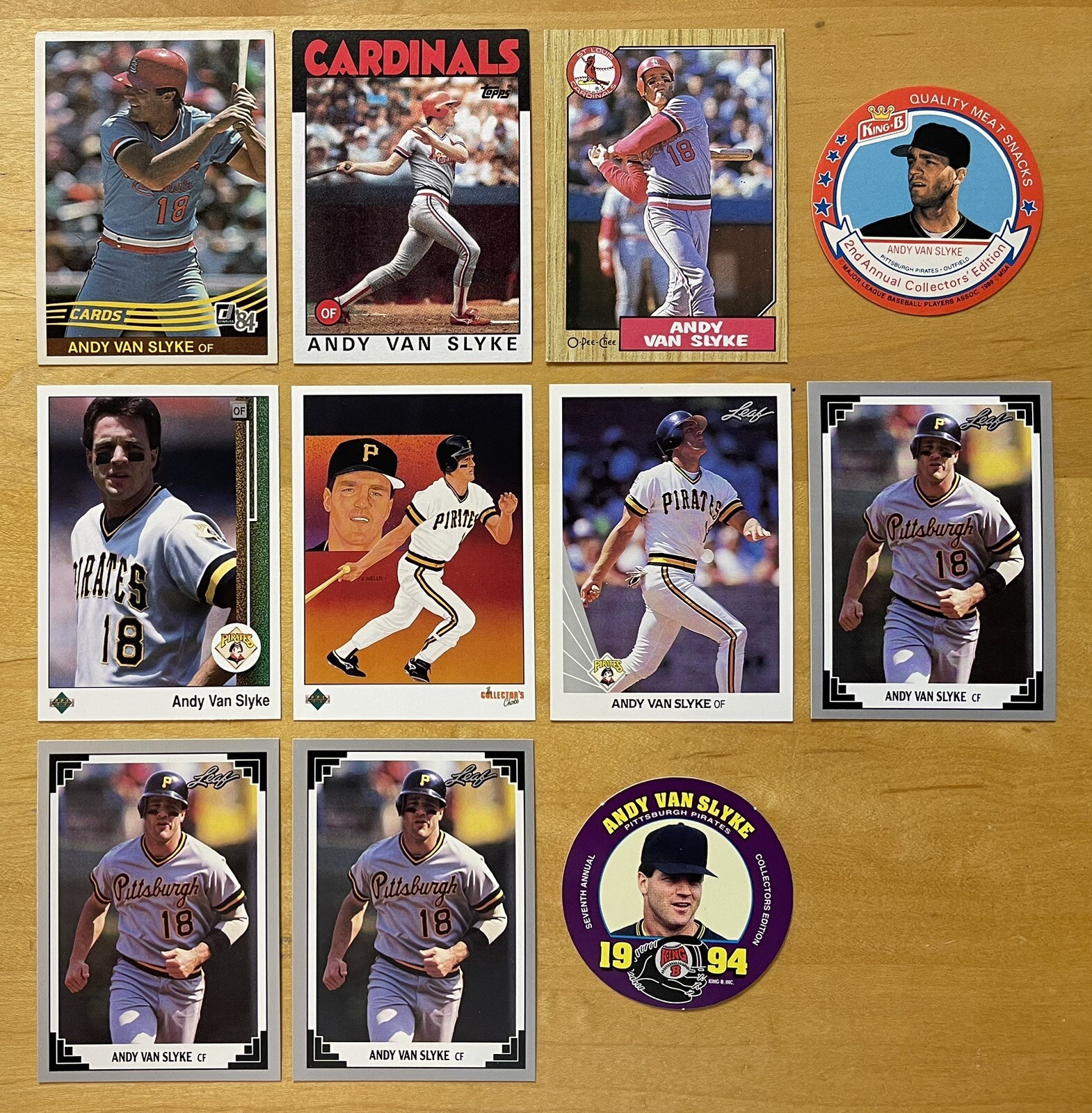 The collection includes a rookie card from the 1984 Donruss set, as well as rare cards from other sets like 1987 O-Pee-Chee (made in Canada) and 1989 and 1994 King-B Collector's Edition Discs.